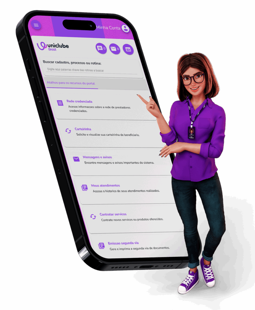 A Uniclube Brasil é um clube de benefícios que reúne serviços e descontos oferecidos por empresas parceiras. Os atendimentos de telemedicina são realizados pela Rapidoc Telemedicina. A Uniclube não realiza atendimentos médicos, exames ou venda de medicamentos, atuando como facilitadora de acesso a benefícios e descontos em redes parceiras, como Dasa, Labi Exames, farmácias e varejo, conforme condições vigentes. Consulte os Termos de Uso.